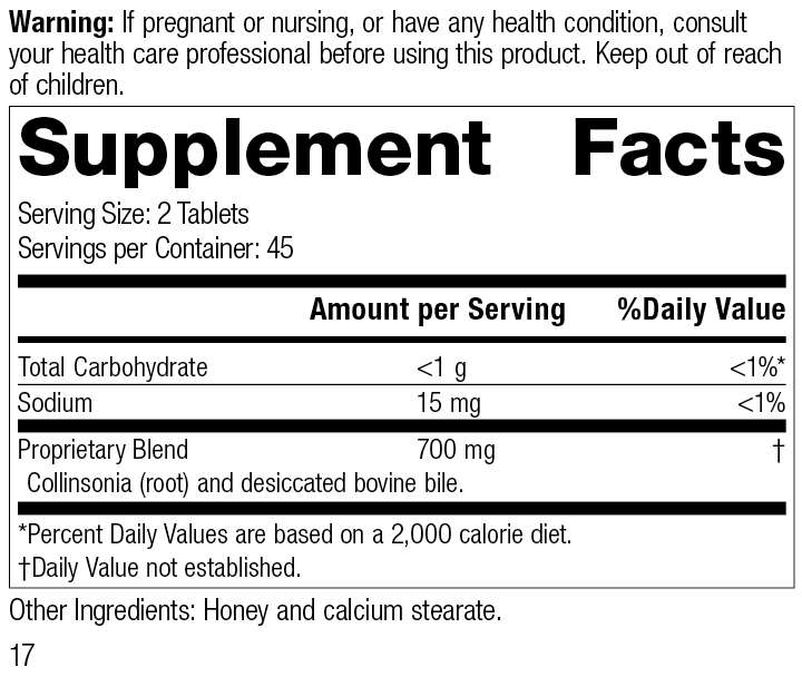 - Collinsonia root has been historically used to support normal elimination and digestive health.*