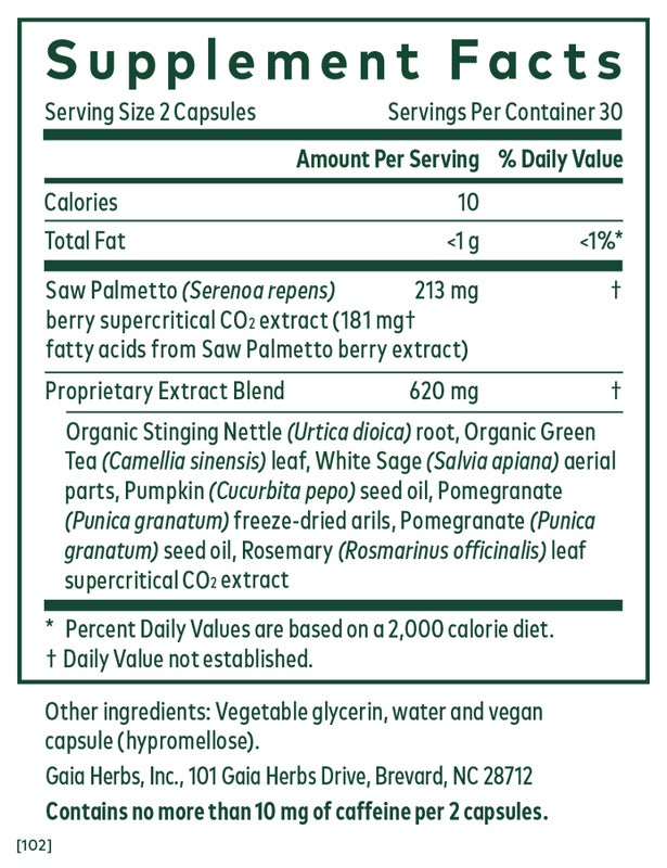 Prostate health is necessary for men’s overall well-being and quality of life. Gaia Herbs’ Prostate Formula supports metabolism of male hormones and provides antioxidant protection with a unique blend of botanically derived ingredients including Pomegranate, White Sage, Green Tea, Nettle root, and Saw Palmetto.*