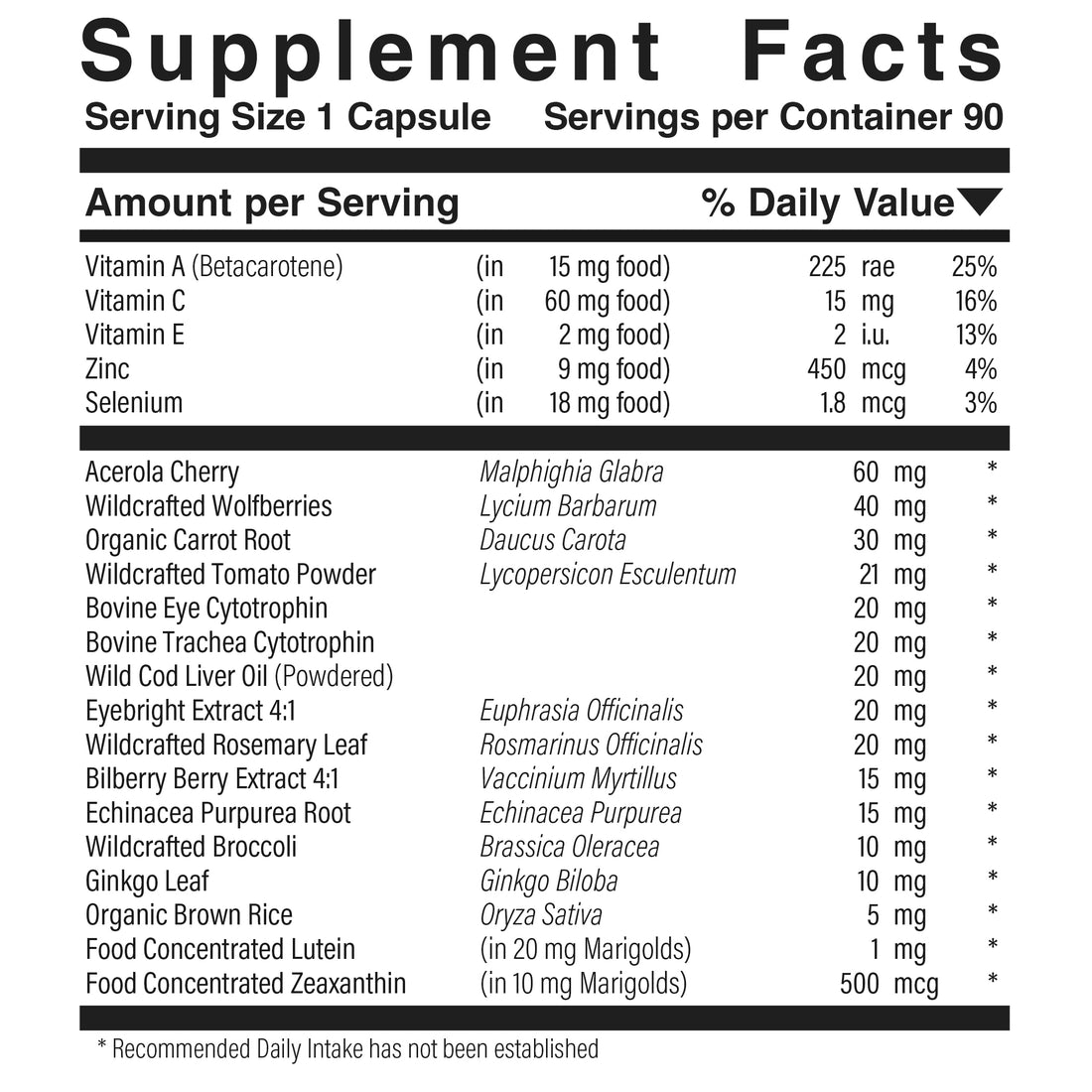 Complete Eye Health™ is a 100% Food supplement that is intended to supply nutrients, glandulars, and herbs needed to maintain and support the healthy functioning of the eyes.