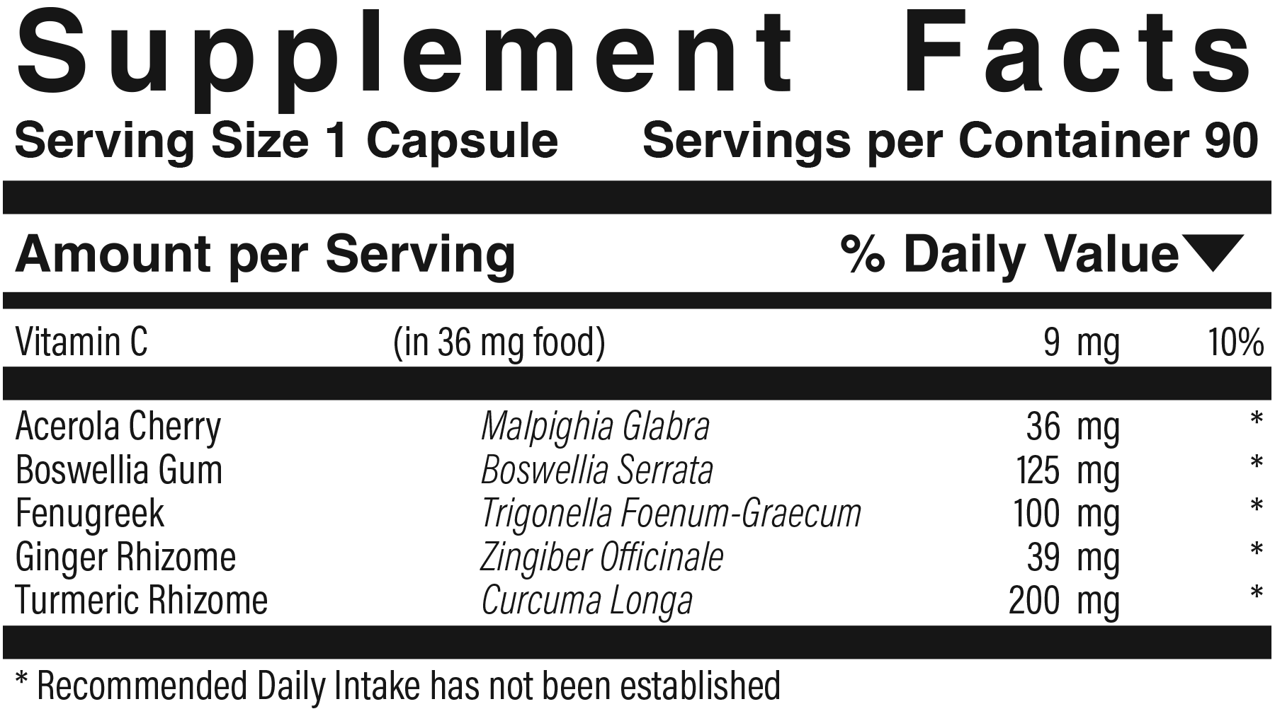 Turmeric-Boswellia C™ is a synergystic blend of herbs which also supplies 100% Food vitamin C.