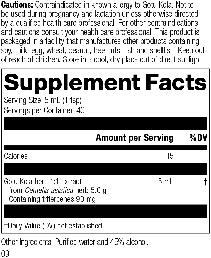 (especially asiaticoside). Gotu Kola 1:1 is standardized